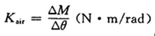 氣浮導軌力矩剛度的測量裝置見圖6。用不同重量的重塊進行加載。滑架的轉角變化用電感測微儀測出。測量方法與圖4所示相同。設力矩變化為ΔM,轉角變化為Δθ,則力矩剛度為